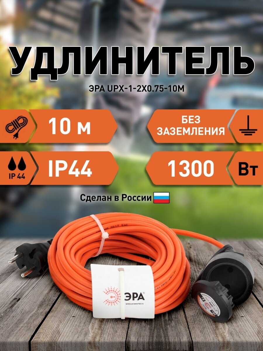 Удлинитель силовой Эра UPx-1-2x0.75-10m-IP44 (Б0043036) 2x0.75кв.мм 1розет. 10м ПВС 6A без катушки о