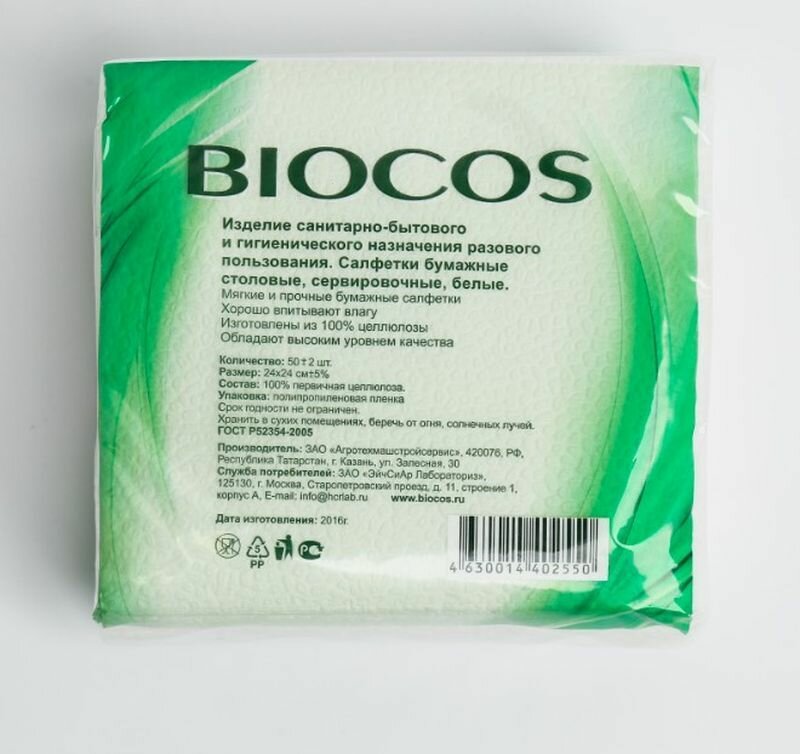 Салфетки бумажные BioCos очищающие 50шт Noname