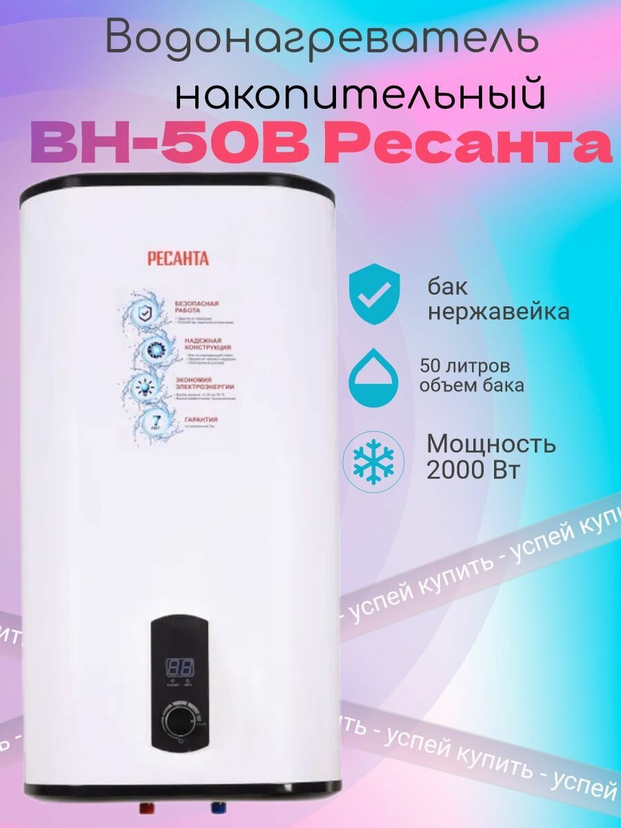 Водонагреватель Ресанта 50л 2кВт, вертикальный, нержавеющая сталь