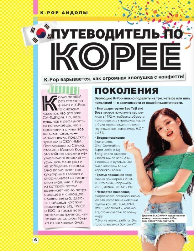 Главное достоинство данной книги - это большое количество фотографий артистов и краткие справки о них самих и группах, в которых они состоят - вся информация подается в формате фактов, отдельных фраз и комментариев, придающих повествованию неофициальный характер - вроде мило и вроде с юмором, но порой это упрощает книгу, делая ее больше похожей на журнал. Книга имеет ряд недостатков - вроде не всегда удачной верстки - опять же по качеству и подходу больше напоминающей не книгу, а журнал, ошибок (к примеру, есть недочеты в разделе с NCT), отсутствия ударений в специфических K-POP терминах(а если ты только знакомишься с K-POP индустрией это важно), быстро теряющей актуальность информации (но это и плюс - благодаря книге, эта часть истории закрепится на страницах), однако несмотря на это, книга, думаю, будет близка как новичкам в этой области, так и тем, кто интересуется K-POP давно, ведь как может не понравится книга большого формата, в твердой обложке, наполненная кадрами с лучшими K-POP группами и хорошими словами о каждой из них?