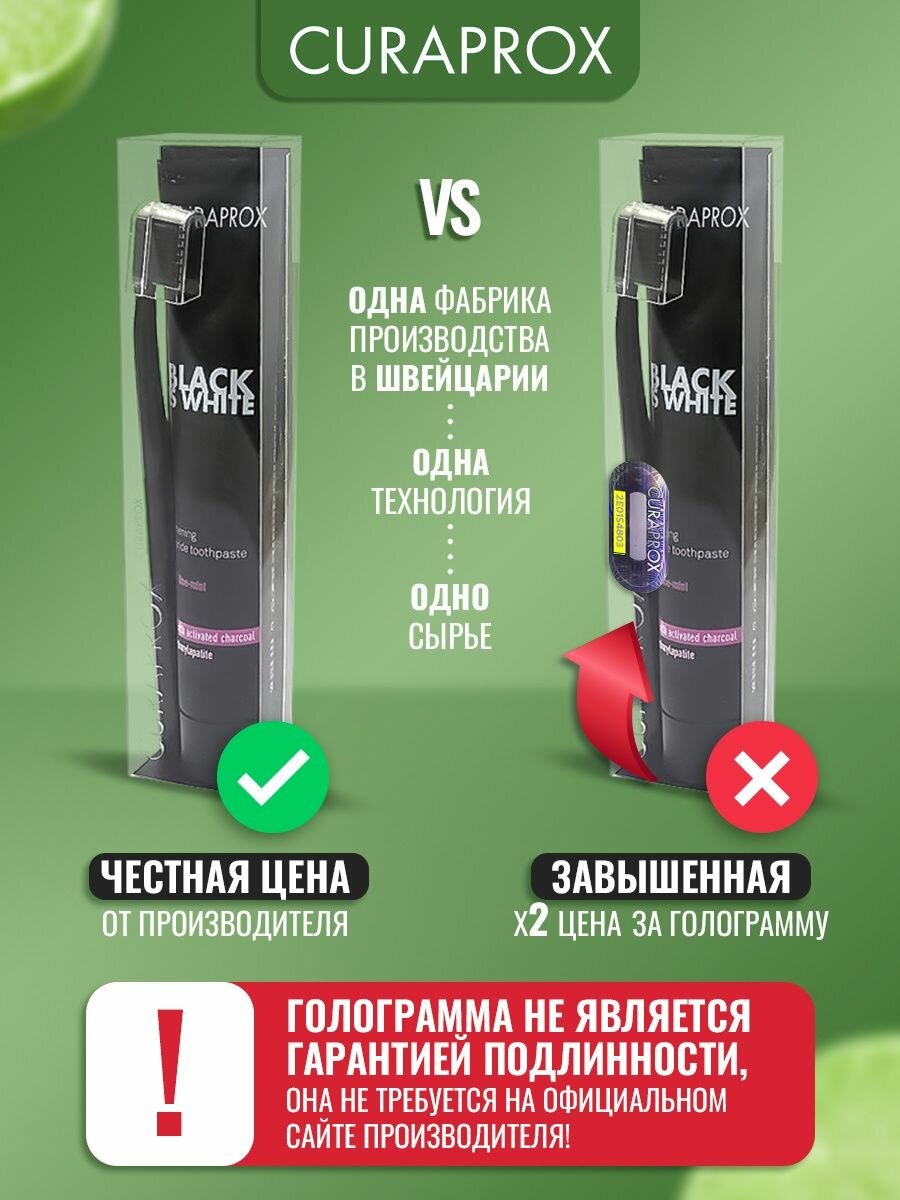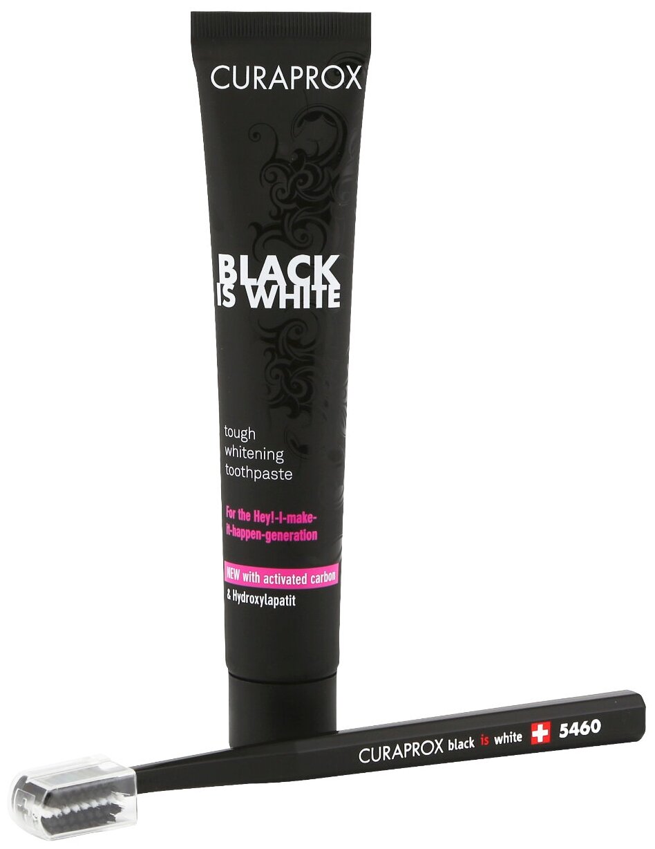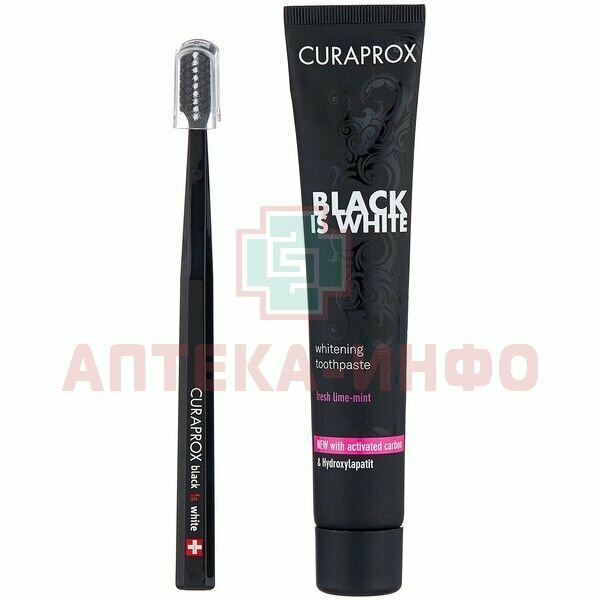 Curaprox Набор: отбеливающая зубная паста 90 мл + ультрамягкая зубная щетка CS 5460 черная со вкусом лайма Black Is White 1 шт (Curaprox ) (73320633)