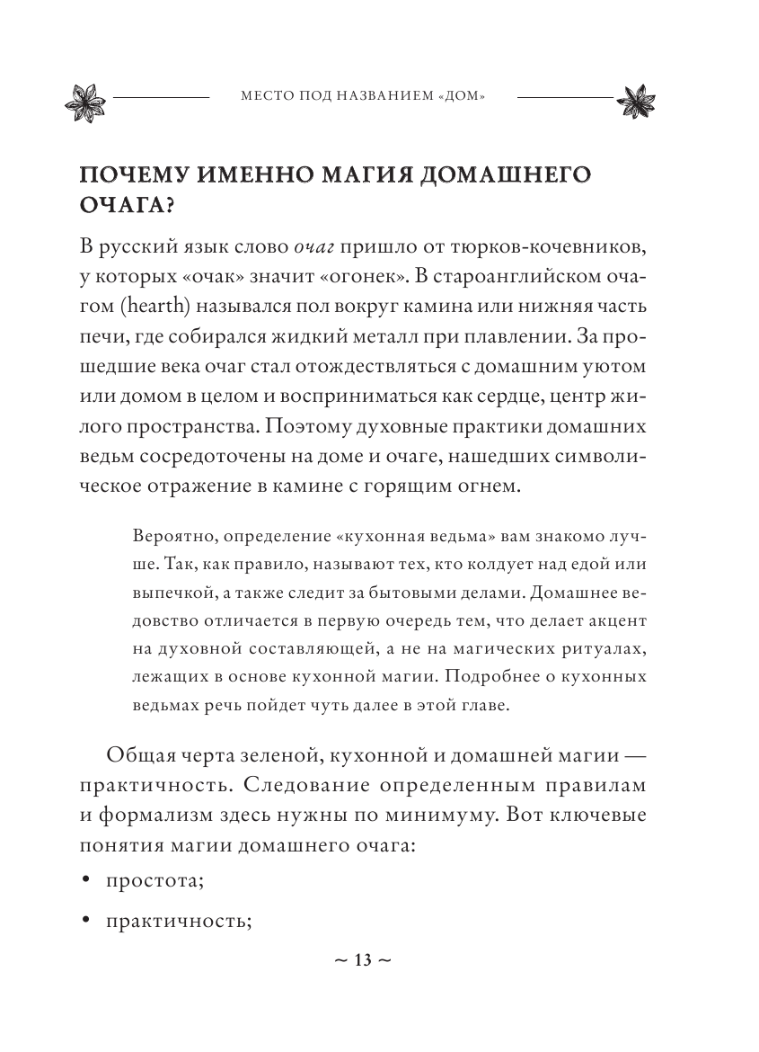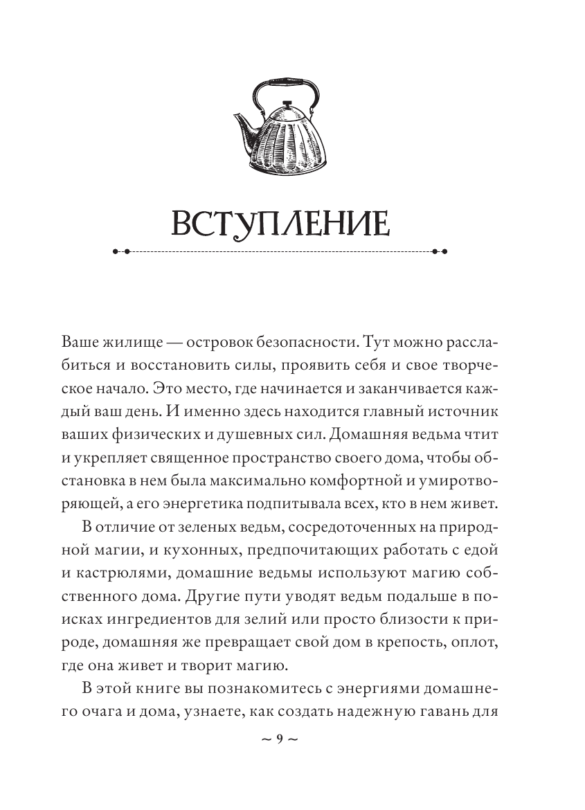 Превратите свой дом в волшебное, защищенное и светлое место, которое будет питать вас своей силой, помогая жить, трудиться и, конечно же, творить магию на благо Земли и всех живых существ! Под чутким руководством Эрин Мёрфи-Хискок, автора многочисленных книг-бестселлеров, в том числе путеводителя по природной магии "Green Witch", вы научитесь охранять свое жилище от негатива, очищать и гармонизировать его энергию, общаться с духами и божествами дома и узнаете, как превратить обычные бытовые дела в настоящее священнодействие, полное глубочайшего смысла. Иными слова — станете настоящей Ведьмой Домашнего очага, чье призвание — подарить радость, уют и безопасность себе, своим близким и гостям. В этом практическом руководстве вы найдете ритуалы, медитации, домашние практики и рецепты простых и полезных блюд, радующих душу и тело, то есть все необходимое, чтобы ваш дом стал не просто вашей крепостью, но и подлинным источником благополучия, вдохновения и силы.