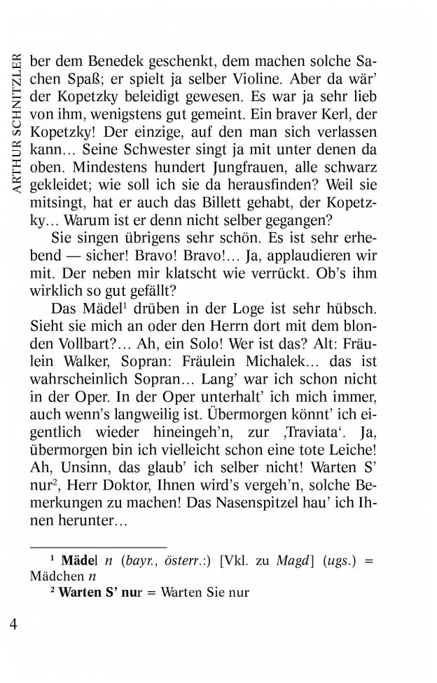 В сборник также входят новеллы "Лейтенант Густль", "Мертвые молчат", "Возвращение Казановы" и "Фрау Эльза". Оригинальный текст снабжен комментариями и словарем.