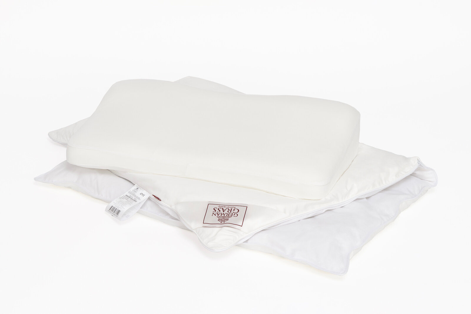 Основой конструкции изделий стали подушки с памятью формы из полиуретановой пены "Memory Foam" в трикотажной наволочке, а классическим дополнением к ним - внешние камеры, закрывающиеся застежкой-молнией, наполненный гусиным пухом, натуральным шелком высшего класса Mulberry или волокнами TENCEL.