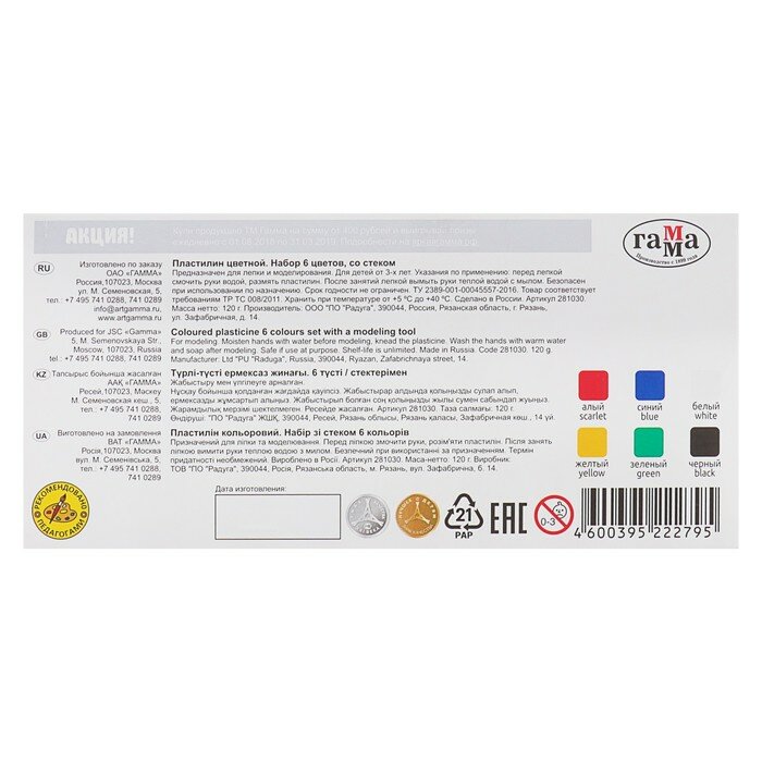 Сервис сравнения цен СкидкаГИД предлагает сравнить цены на товар «Пластилин Гамма Классический со стеком 6 цветов (281030)»