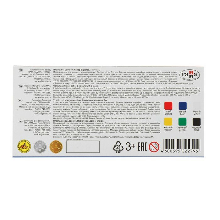 На сегодняшний день товар «Пластилин Гамма Классический со стеком 6 цветов (281030)» можно купить с кешбеком в 1 магазине: Яндекс.Маркет
