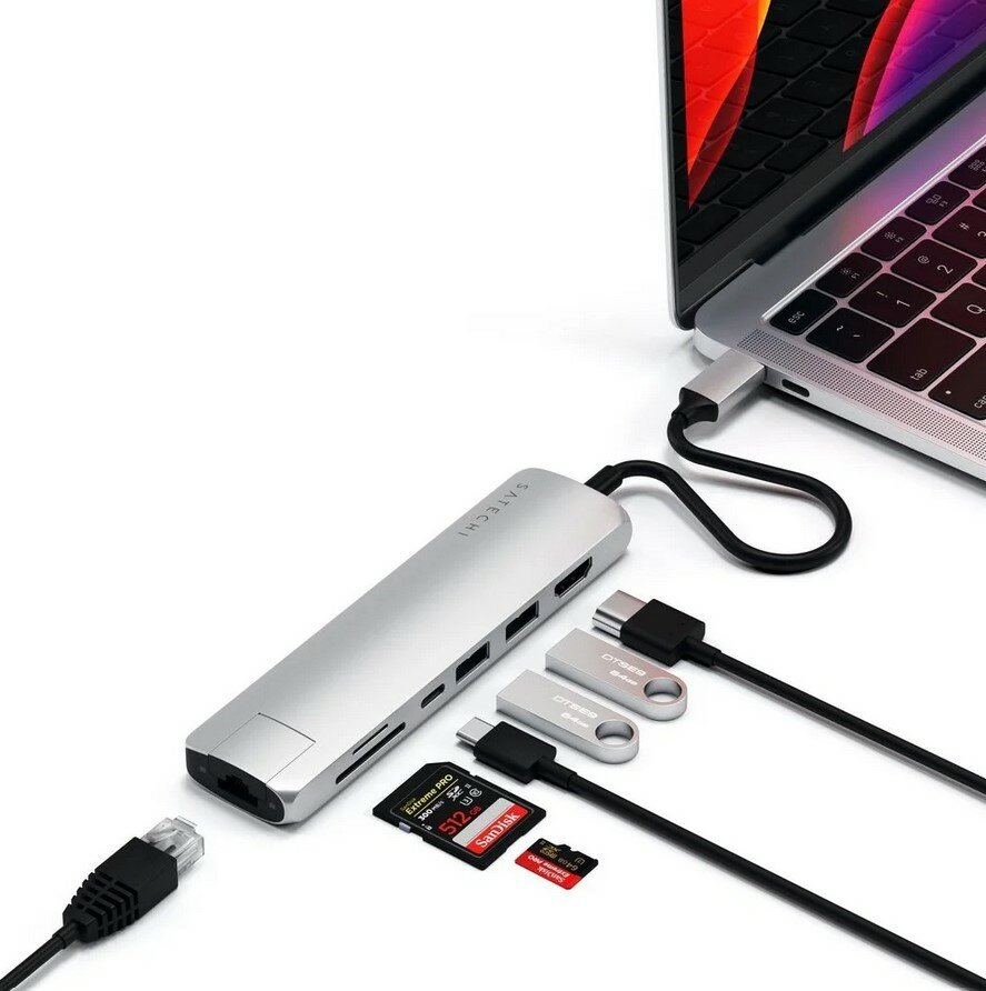 Возьмите свое рабочее место в дорогу с ультрапортативным многопортовым устройством Satechi USB-C Slim с адаптером Ethernet. Благодаря Gigabit Ethernet, 4K HDMI (60 Гц), зарядке USB-C PD, двум портам USB-A 3.0 и кард-ридерам micro/SD адаптер легко объединяет семь портов в одно компактное устройство.