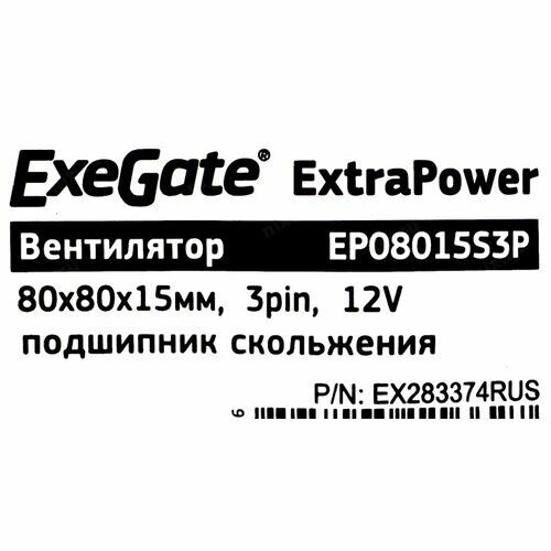 Exegate EX283373RUS Вентилятор ExeGate ExtraSilent ES08015S3P 80x80x15 мм подшипник скольжения 3pin 1600RPM 23dBA