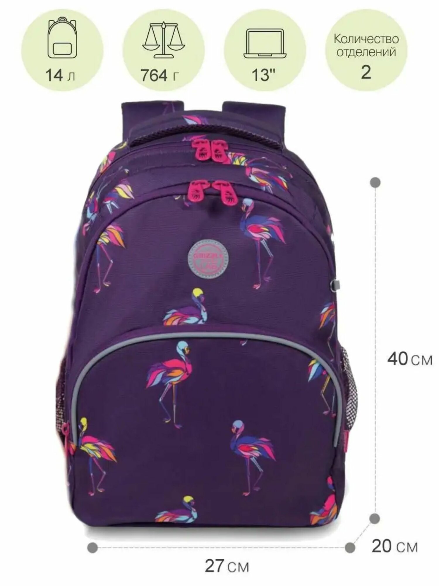 Рюкзак GRIZZLY универсальный для девушек Фламинго 29х40х20 см RD-843-1/1