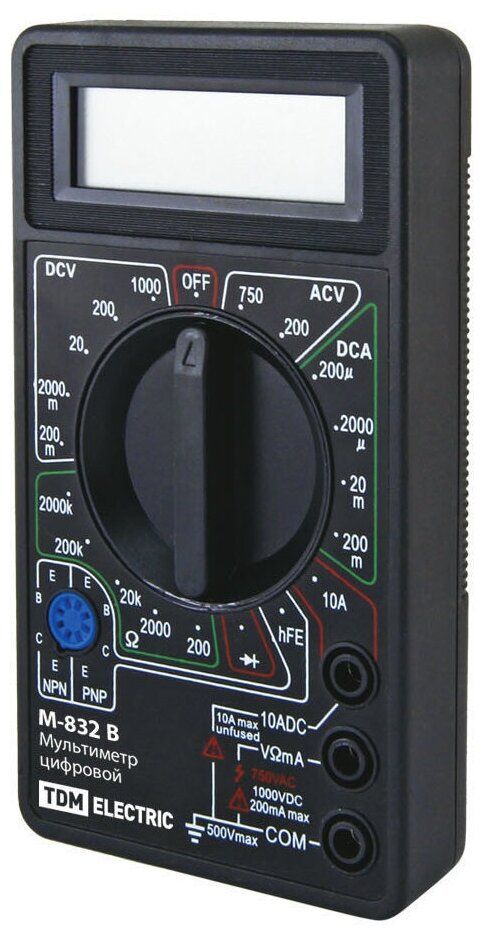 | Комплектация | Мультиметр серии М-832,Элемент питания типа 6F23 (6LR61),Тестовые щупы,Блистер / Упаковочная коробка,Руководство по эксплуатации, Паспорт |