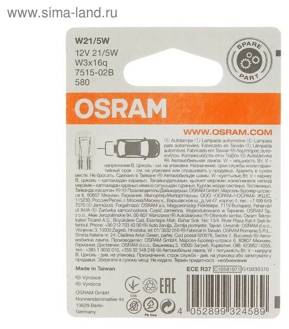 | Типоразмер | W21/5W; цоколь:W3x16q |
