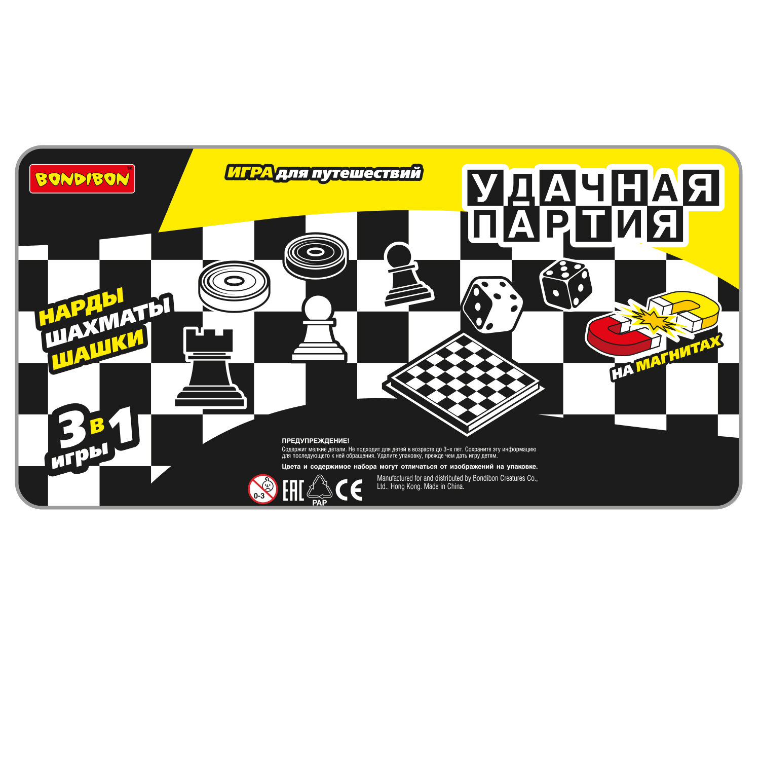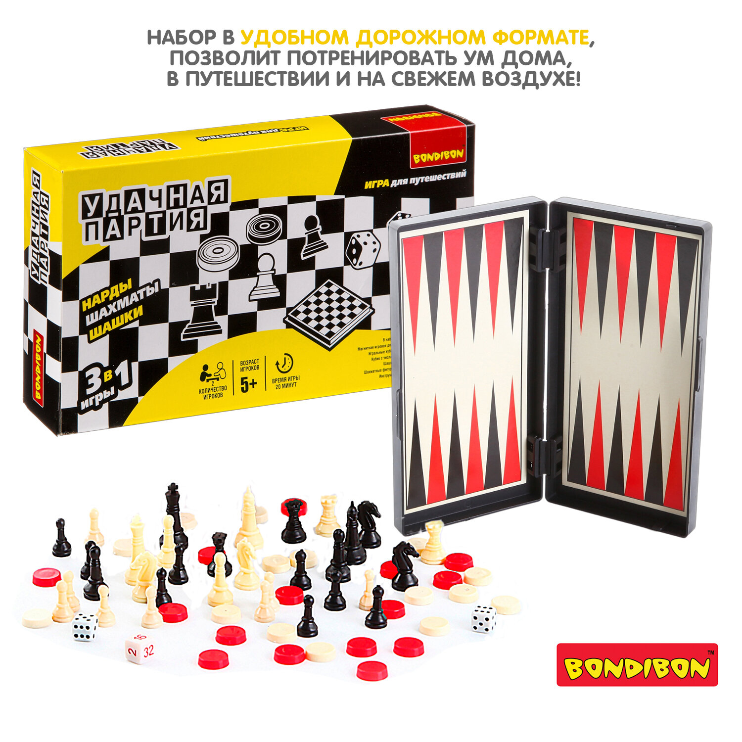 Игровой набор Bondibon "Удачная партия" 3в1: нарды шашки шахматы (ВВ0684)