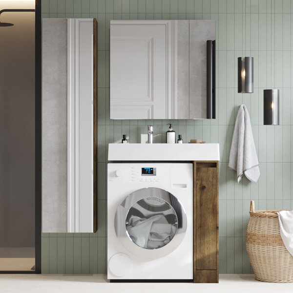 Компактный размер данного комплекта подойдет для небольших ванных комнат и обеспечит место для хранения необходимых предметов и аксессуаров.