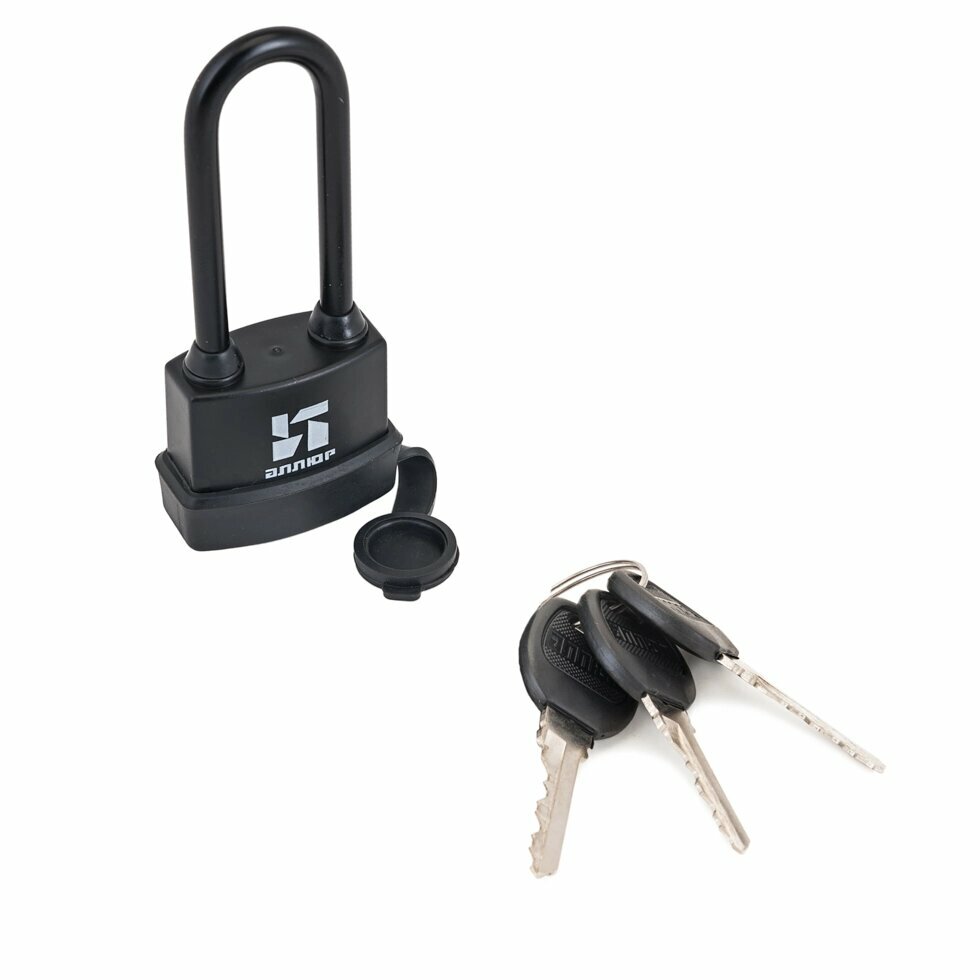 - Замок навесной, влагозащищенный, с увеличенным количеством ключей и длинной дужкой.