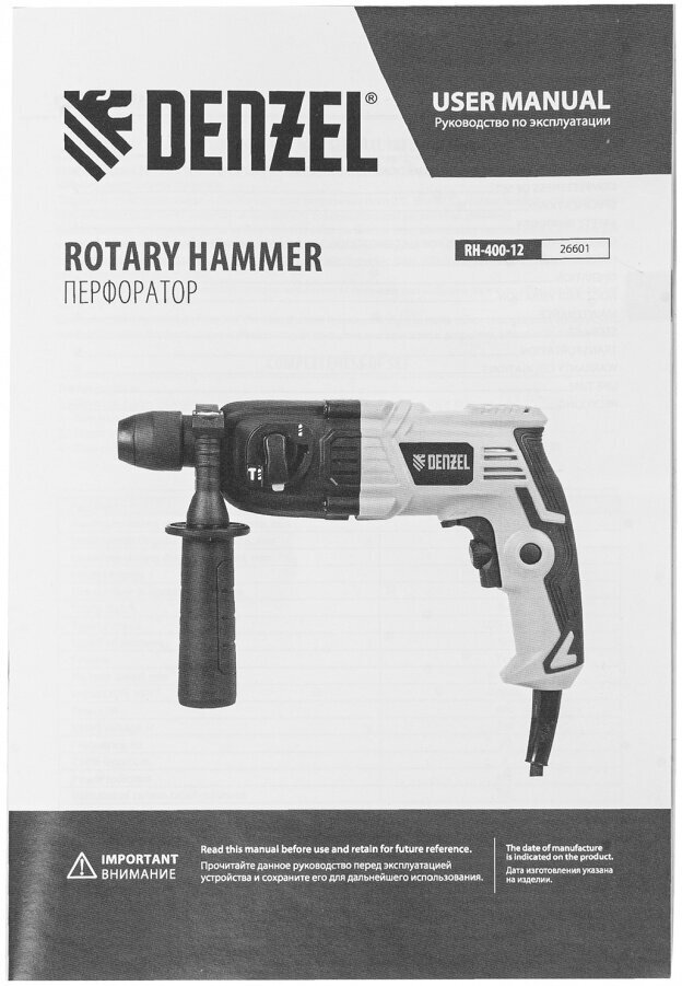 Перфоратор Denzel RH-400-12 без аккумулятора 400 Вт