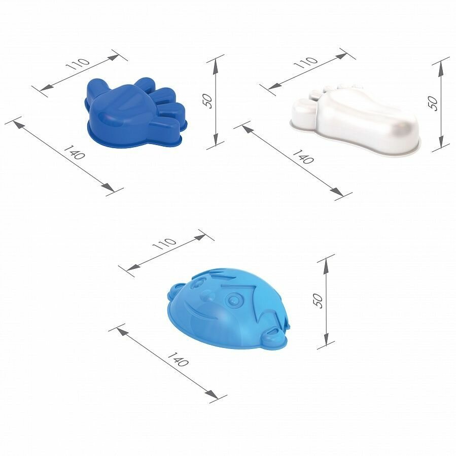 Комплектация: 4 формочки (девочка, мальчик, ножка, ручка).