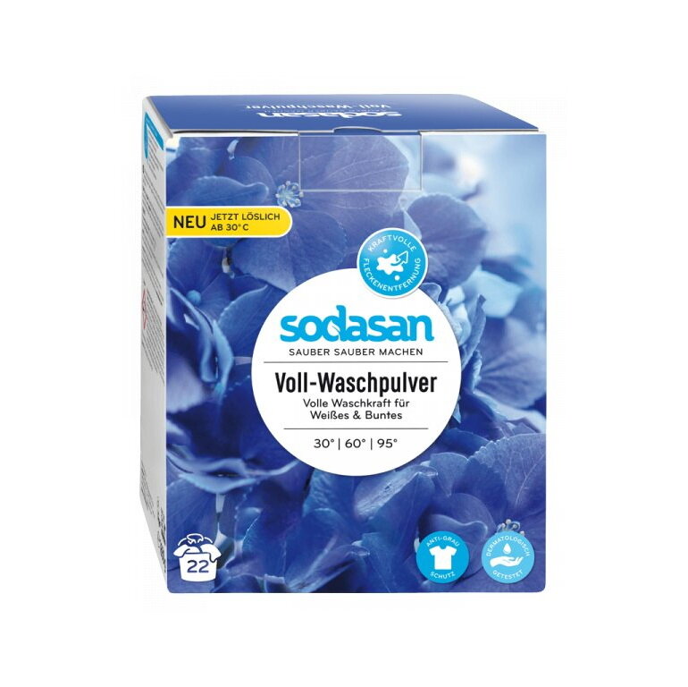 Стиральный порошок-концентрат Sodasan Heavy Duty для белых и цветных вещей со смягчителем воды и кислородным отбеливателем 1 кг
