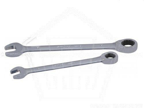Описание Гаечный ключ с накидной рабочей частью со встроенным храповым механизмом. Поставляется в комбинации с рожковой частью того же размера. Ключ применяется при обслуживании крепежа при свободном его вращении, без экстремальных нагрузок. Малый, 5°, обратный ход делает ключ незаменимым в ограниченном рабочем пространстве. Храповой механизм “SNAP GEAR”, с колесом в 72 зуба, обеспечивает достаточно высокий передаваемый крутящий момент благодаря закаленной особым способом хромованадиевой стали, применяемой при производстве механизма. Ключ изготовлен по стандарту ANSI, имеет трехслойное хромоникелевое покрытие, зеркально отполирован. Область применения Ключи гаечные комбинированные ключи – универсальные гаечные ключи, совмещающие в себе функционал и преимущества рожковых и накидных ключей. Зевы комбинированных ключей имеют одинаковые размеры. Именно сочетание сильных сторон рожковых и накидных ключей и нивелирование сторон слабых делают комбинированные ключи исключительно широко востребованными со стороны потребителей и применяемыми в самых разных сферах – производственной, ремонтной, авторемонтной, бытовой и других.Ключи гаечные с открытым и кольцевым зевами предназначены для монтажа либо демонтажа резьбовых соединений. Размеры