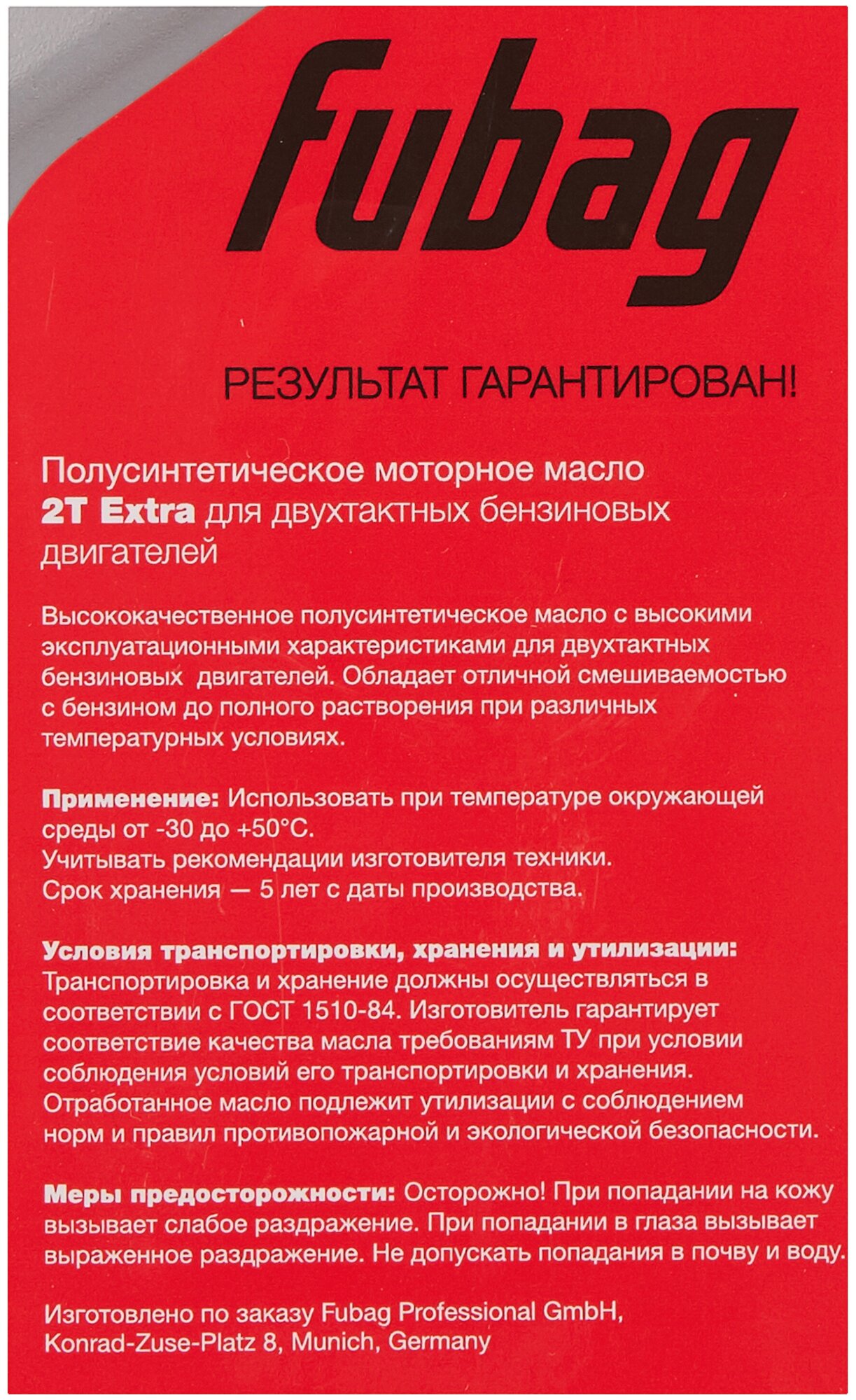 Полусинтетическое моторное масло для двухтактных бензиновых двигателей FUBAG 2Т extra 838267
