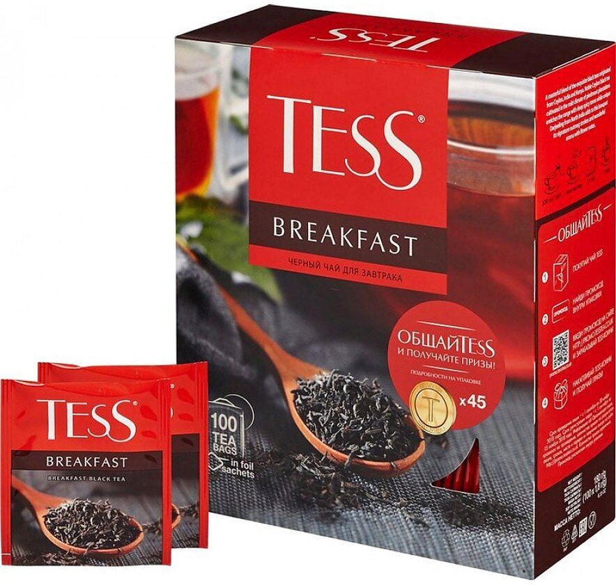 Чай Tess Breakfast черный классический 100пак. 180гр карт/уп. (1446-09)
