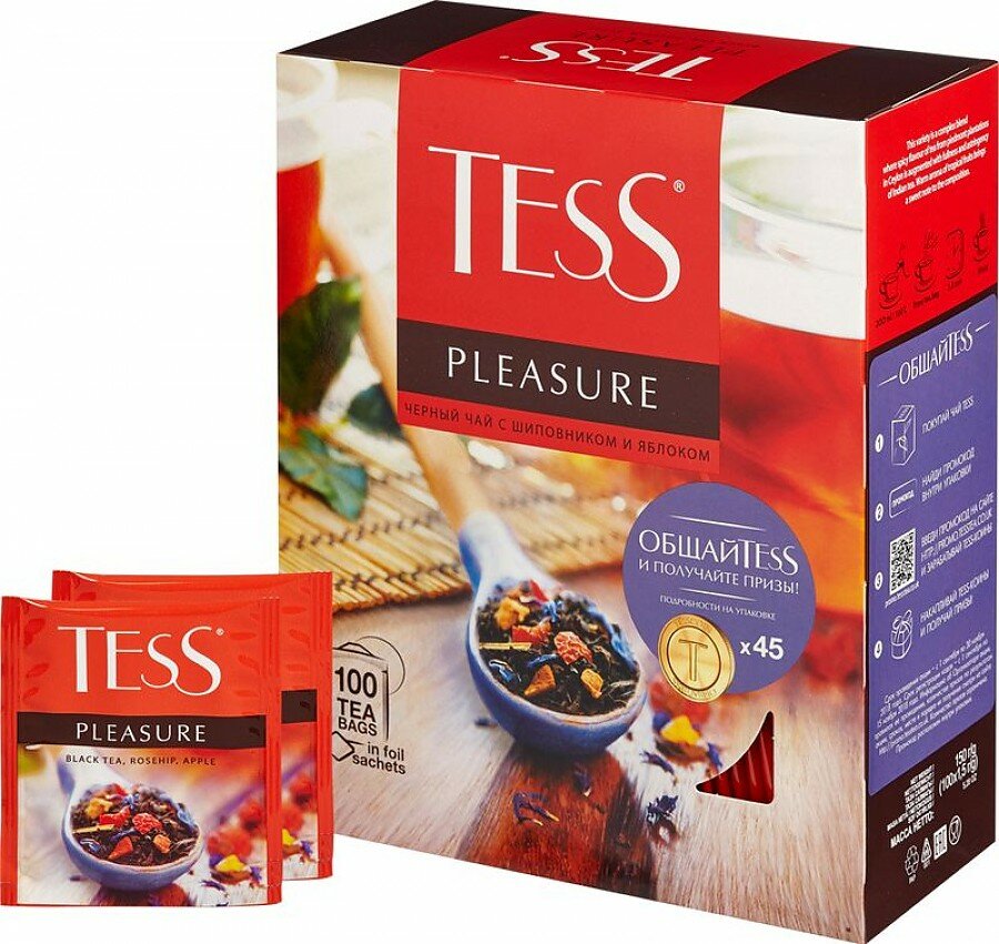 Чай Tess Pleasure черный шиповник/яблоко 100пак. 150гр карт/уп. (0919-09)