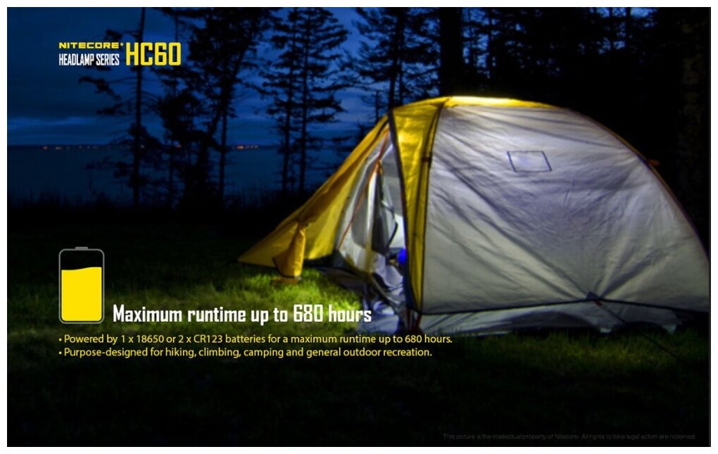 Фонарь Nitecore HC60, аккумулятор Nitecore 3400mAh, micro-USB кабель для зарядки, запасные уплотнительные кольца, повязка для ношения фонаря на голове, инструкция пользователя, фирменная подарочная упаковка Nitecore с уникальным серийным номером (продублирован на корпусе фонаря) для защиты от подделок. Оригинальность продукции можно проверить на сайте производителя. Для ситуаций, когда вам необходим компактный, легкий и довольно яркий источник освещения, который гарантированно не будет стеснять движения, как нельзя лучше подходят именно «налобники». Подобные фонари зачастую комплектуются специальными креплениями или ремнями, с помощью которых «налобники» можно разместить на голове или на головном уборе (кепке/каске/шлеме), что делает их довольно удобными, ведь в подобном случае у Вас будут свободны обе руки.