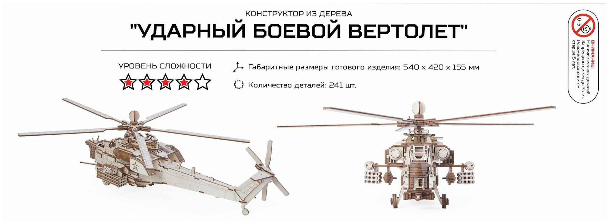 Детали конструктора изготавливаются из березовой фанеры высшего сорта с помощью лазерной резки. Все детали отшлифованы и совершенно безопасны для детей.
