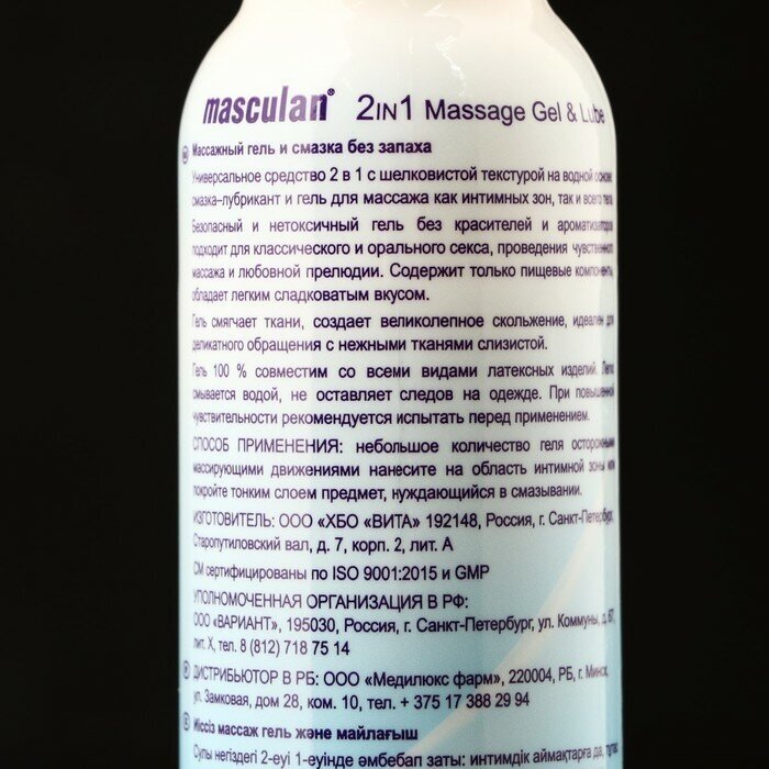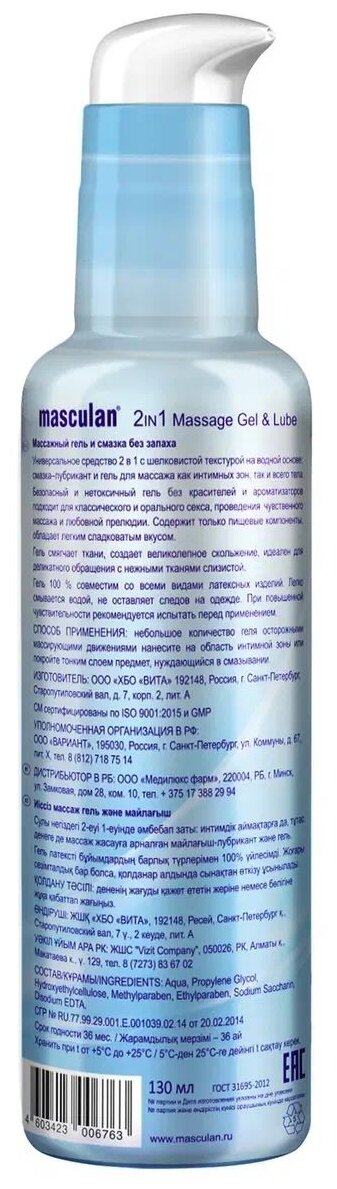 Маскулан гель массажный и смазка без запаха masculan 2 в 1 фл.130мл с дозатором ООО "ХБО при РАН "ВИТА" (1152469)