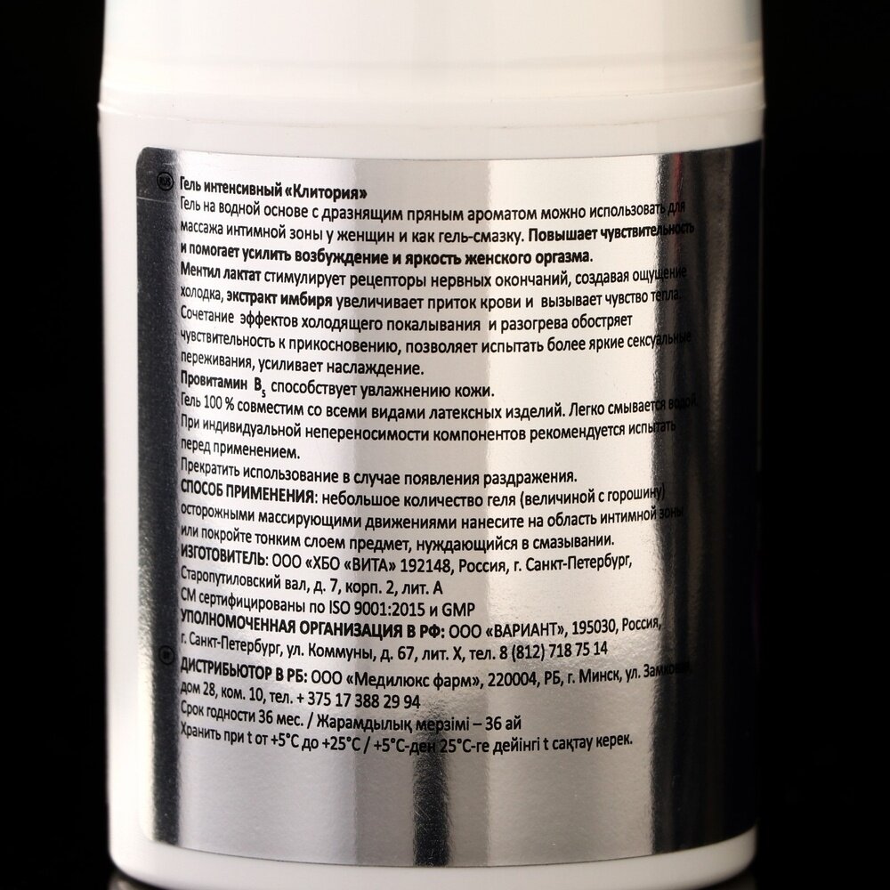 Гель на водной основе с дразнящим пряным ароматом можно использовать для массажа интимной зоны у женщин и как гель-смазку. Повышает чувствительность и позволяет усилить возбуждение и яркость женского оргазма. Ментиллактат стимулирует рецепторы нервных окончаний, создавая ощущение холодка, эфирное масло имбиря (в составе натурального ароматизатора) увеличивает приток крови и вызывает чувство тепла. Сочетание эффектов холодящего покалывания и разогрева обостряет чувствительность прикосновению, позволяет испытать более яркие сексуальные переживания. Усиливает наслаждение. Провитамин В5 в составе геля увлажняет кожу, обладает заживляющими свойствами. Гель на 100% совместим со всеми видами латекса.