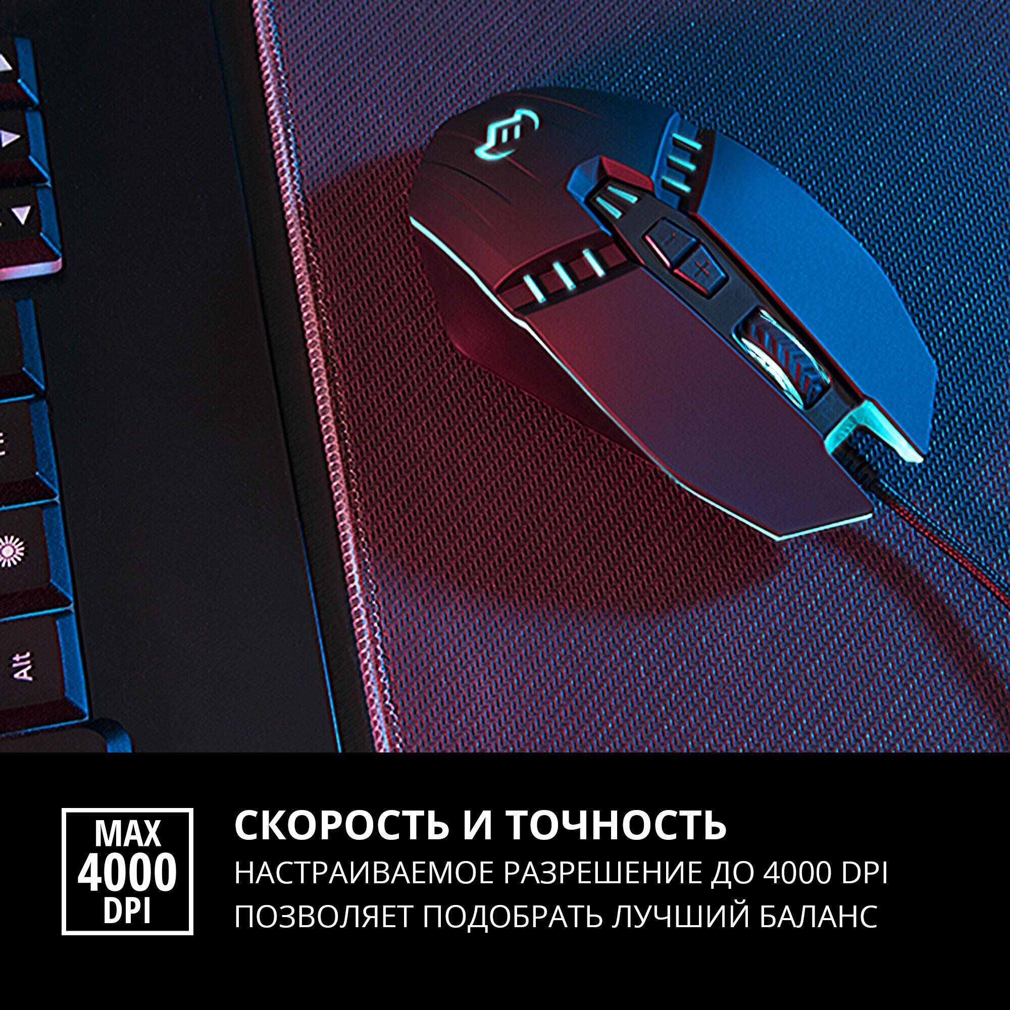 Настраиваемое разрешение до 4000 DPI позволяет подобрать лучший баланс скорости и точности перемещения для любой игры — от шутера до стратегии.