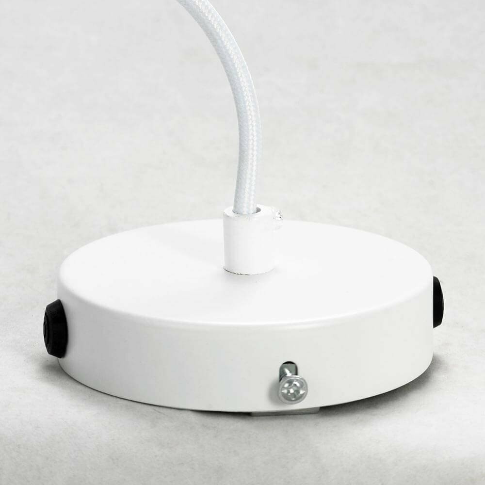 Белая подвесная люстра с направленными в разные стороны излучающими свет лампами украсит коммерческое и жилое помещение. Примененные в конструкции ходовые цоколи Е27 позволят установит в светильник лампы разной формы и стиля. Можно установить белые небольшые шары, а можно и обьемные ретро-лампы.