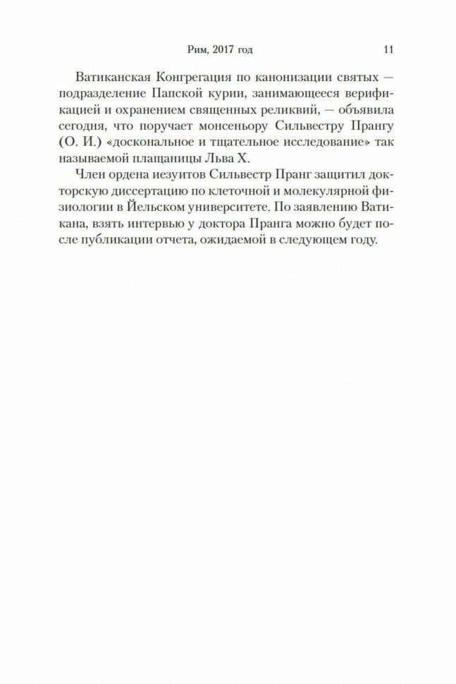 Книга мне понравилась. Смешная. Ну, не прямо гомерический хохот вызывает, но есть чему улыбнуться. Да и тематика такая, с какой мне ещё не приходилось сталкиваться - поиск и продажа святых мощей и разных штук, тем святым принадлежавшим. Тем не менее, ощущается книга как современная и в этом ее большой минус. Да, сюжет, да, атмосфера, но в остальном - некоторые выражения, какая-то общая нотка в поведении героев, сбивают настрой. Возможно, это отличительная черта автора, не знаю, не читала другие его книги. Возможно, надо ещё разок перечитать повесть. Но пока впечатление смазанное.