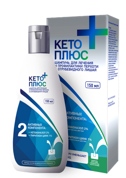 Кето плюс — это лечебный шампунь, предназначенный для борьбы с поражениями кожи головы, вызванными грибковыми микроорганизмами. Основными действующими веществами шампуня являются кетоконазол и пиритион цинка. Кетоконазол обладает мощным противогрибковым действием и эффективно борется с дрожжеподобными грибами, такими как Malassezia furfur (также известного как Pityrosporum ovale), которые часто приводят к дерматологическим проблемам, таким как перхоть и себорейный дерматит. Цинка пиритион поддерживает эффект шампуня, обладая антипролиферативными и противогрибковыми свойствами, что помогает уменьшить избыточное шелушение кожи. Кето плюс быстро уменьшает зуд и шелушение, связанные с перхотью и себорейным дерматитом, обеспечивая облегчение и комфорт. Препарат показан для лечения и профилактики различных поражений кожи головы, включая отрубевидный лишай, себорейный дерматит и различные формы перхоти.