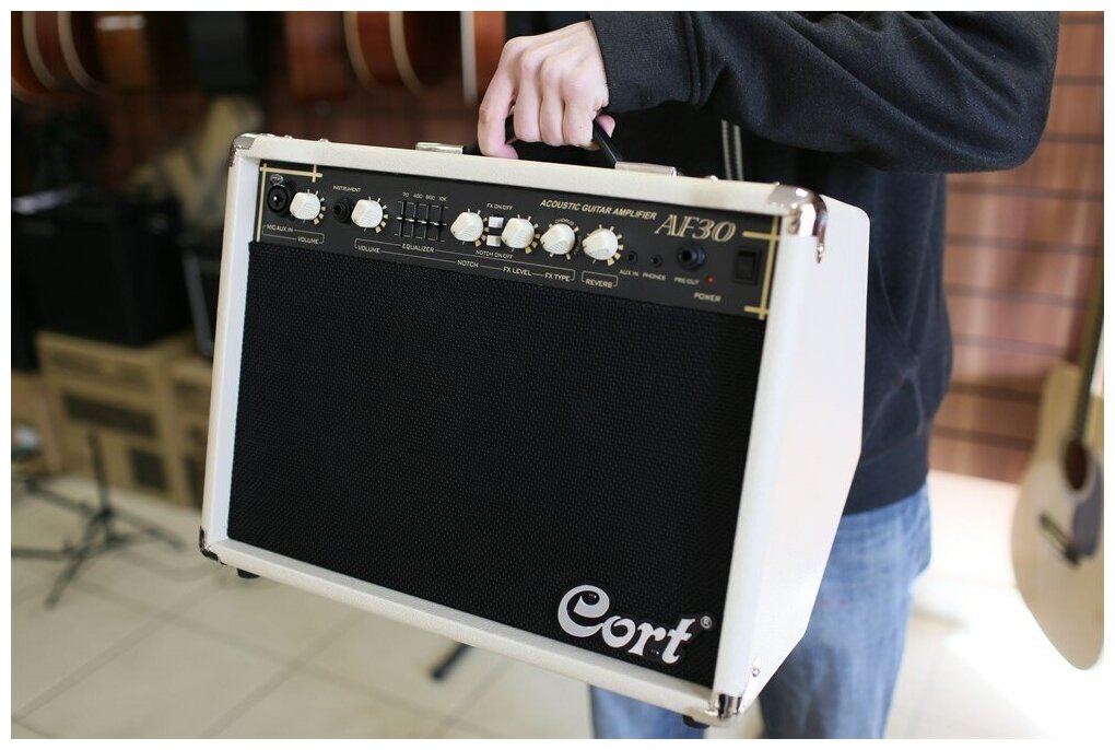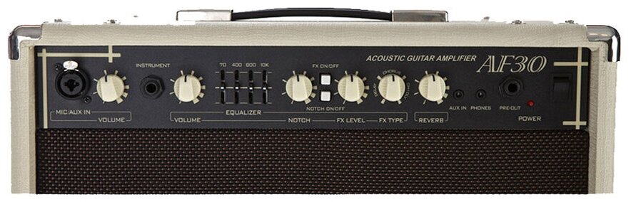 Комбоусилитель обеспечивает 30 Ватт чистой и плотной мощности и оснащен встроенным цифровым процессором эффектов хоруса и дилэя, 4-полосным графическим эквалайзером для дальнейшего формирования звучания, а также режекторным фильтром для устранения обратной связи, функцией, которая обычно встречается в усилителях, которые стоят намного дороже. Комбик идеально подходит для небольших площадок, репетиций и домашних занятий. Мобильный, но мощный, он расширит диапазон вашей электро-акустической гитары.