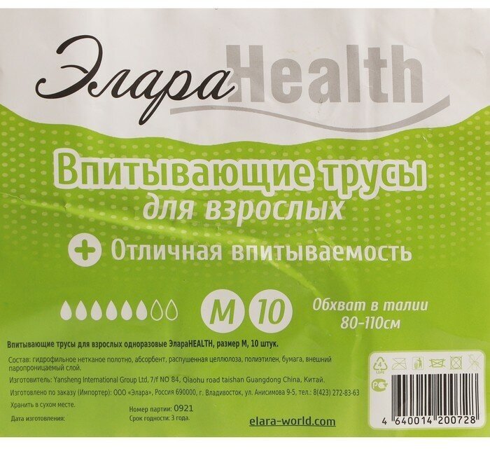 Подгузники-трусики для взрослых ЭлараHealth L 10шт. (4640014200735)