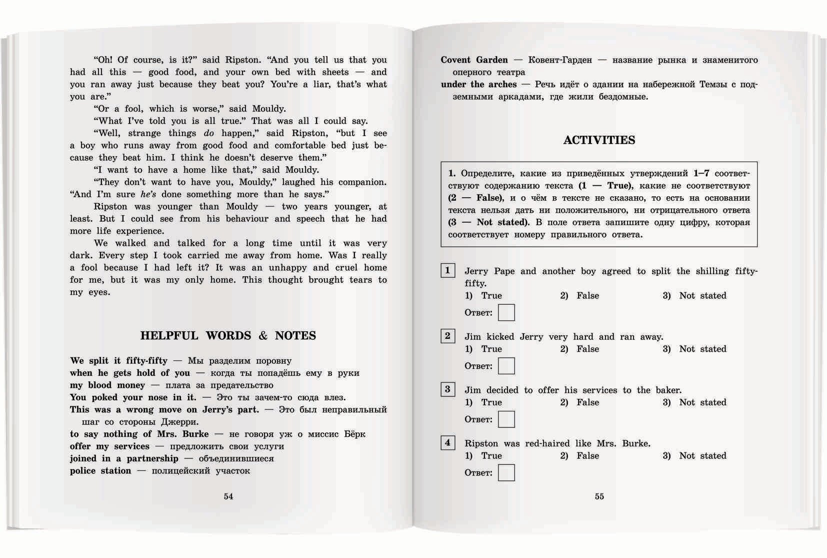 С сравнении с другими сериями книг на английском языке, эта показалась мне самой лучшей. Книга небольшая, тонкая, удобная. В конце есть словарик для запоминания и перевода слов. Также, представлены задания в формате ОГЭ по содержанию текста, поиску ответа в содержании. Подходит на уровень А2, очень редко встречаются сложные конструкции