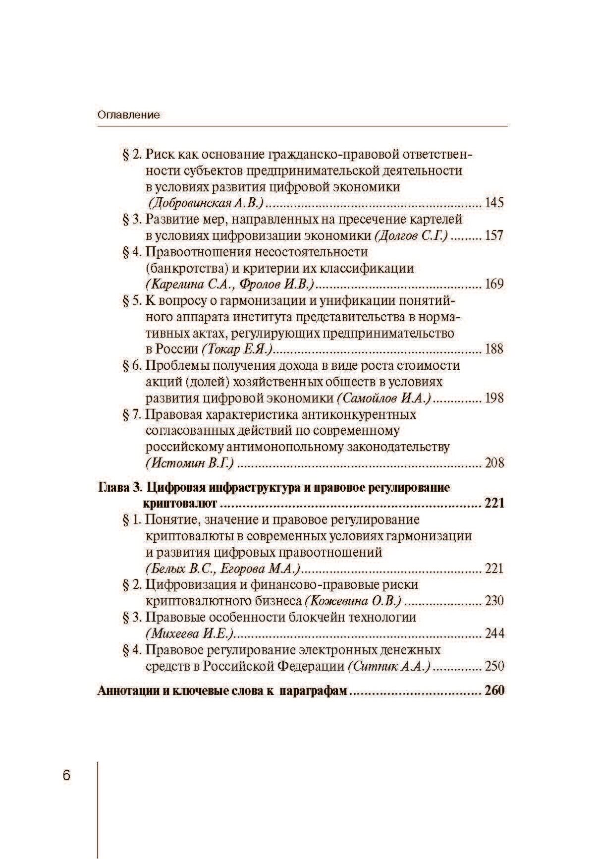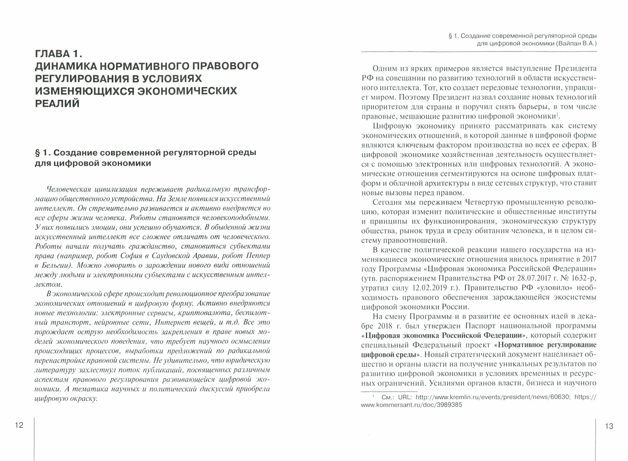 Коллективная монография посвящена актуальным вопросам правового регулирования цифровой экономики на современном этапе развития общества, в том числе проблемам нормативного правового регулирования в разных секторах экономики, вопросам модернизации публичных закупок, проблемам осуществления прав предпринимателей в условиях гармонизации и унификации российского законодательства, а также вопросам правового регулирования обращения электронных денежных средств. Книга предназначена для преподавателей, научных и практических работников, работников органов государственной власти, студентов, магистрантов, аспирантов, а также для всех, кто интересуется проблемами нормативного правового регулирования в условиях изменяющихся экономических реалий и сравнительного правоведения. Ключевые слова: принципы права, цифровые технологии, цифровая экономика, конкуренция, группа лиц, предпринимательское право, смартконтракты, государственное регулирование, комплаенс, инвестирование.