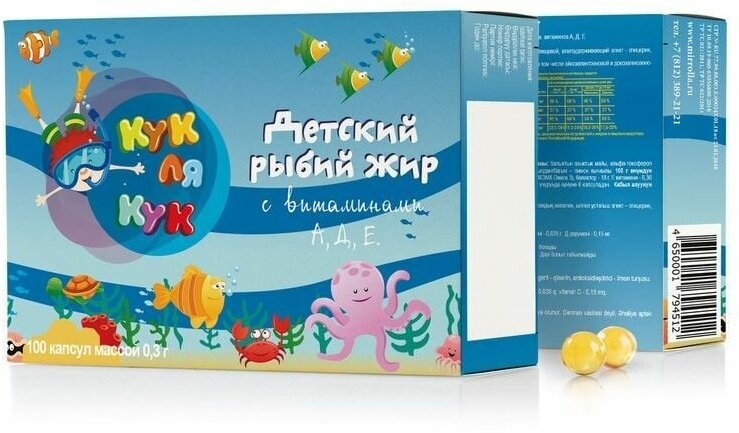 Рыбий жир детский "кук ля кук" с витаминами а д е капс. 03г №100 (бад) ООО Мирролла (570836)