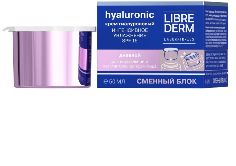 Либридерм крем гиалуроновый "Интенсивное увлажнение" spf15 дневной для норм. и чувств. кожи сменный блок 50мл ООО "БИОФАРМЛАБ"/ ООО "Дина+" (1135605)