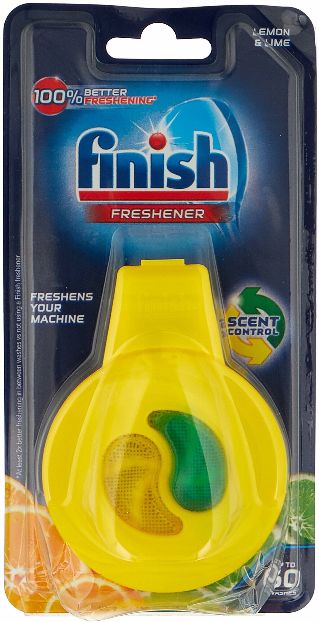 Освежитель для посудомоечных машин Finish поглощает и нейтрализует неприятные запахи и гарантирует приятный аромат, не оставляя каких-либо запахов на посуде. Поэтому каждый раз, когда Вы открываете посудомоечную машину для новой или повторной загрузки, Вы ощущаете тонкий аромат лимона и лайма.