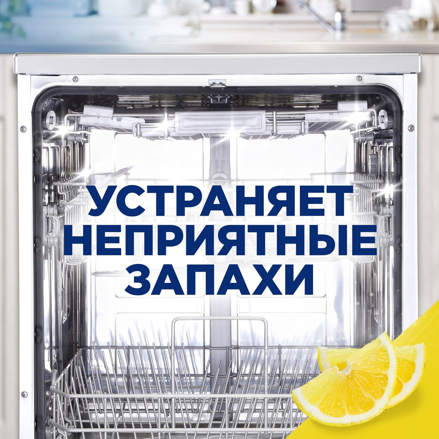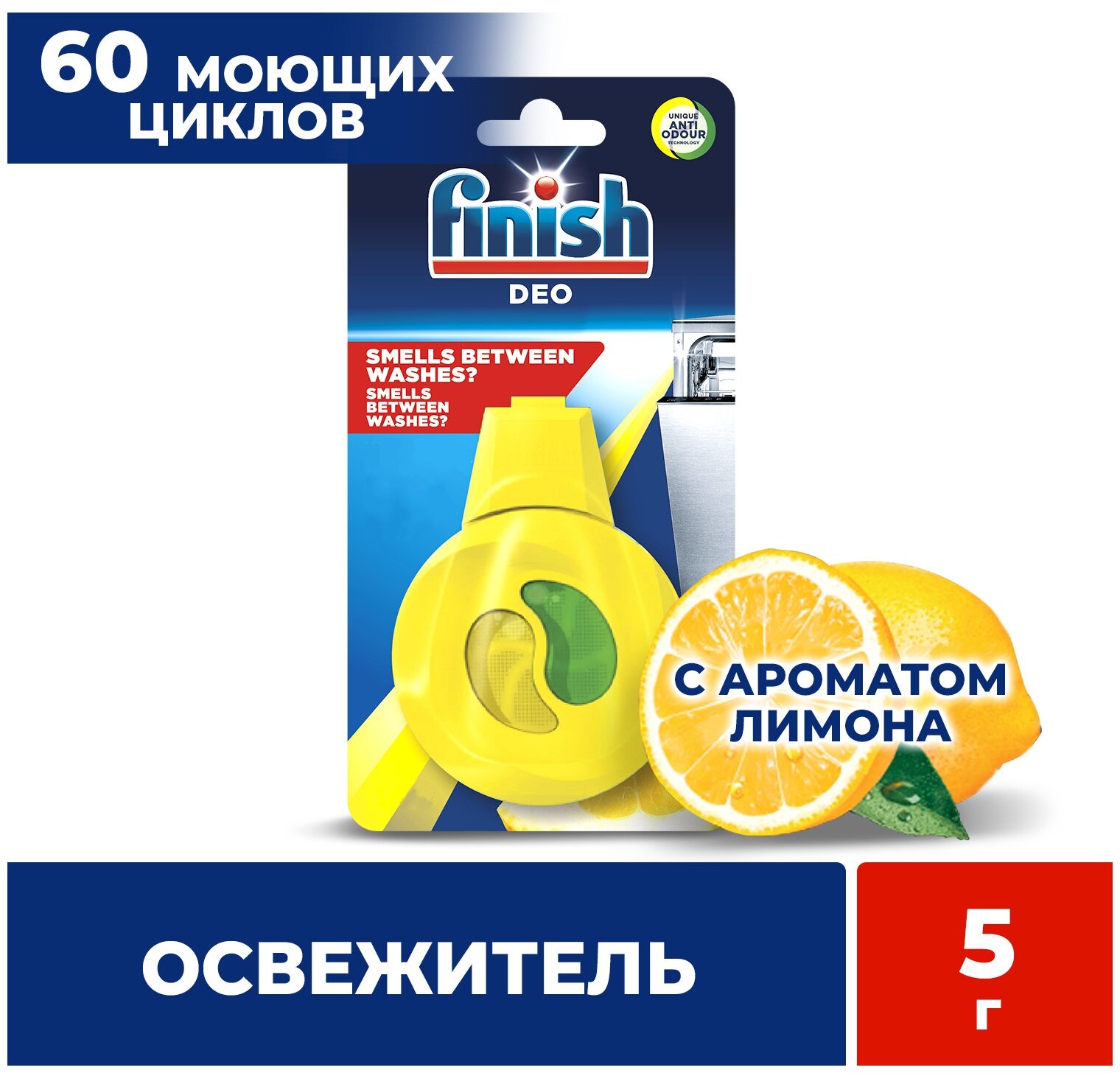 Когда Вы загружаете в посудомоечную машину грязные тарелки и столовые приборы и не запускаете моющий цикл сразу, на посуде начинают размножаться бактерии. Это является причиной неприятного запаха в посудомоечной машине, который чувствуется каждый раз, когда Вы ее открываете. Освежитель для посудомоечных машин Finish поглощает и нейтрализует неприятные запахи и гарантирует приятный аромат, не оставляя каких-либо запахов на посуде. Поэтому каждый раз, когда Вы открываете посудомоечную машину для новой или повторной загрузки, Вы ощущаете тонкий аромат лимона и лайма.