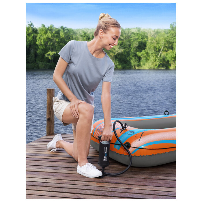 Насос механический ручной для бассейна BestwayРучной насос Bestway для накачивания надувных изделий. Обладает системой двойного действия: накачивает надувные изделия как при прямом, так и обратном ходе поршня. В комплекте с насосом идет гибкий шланг и 3 насадки для практически всех видов надувных изделий. Насос имеет удобный упор для ног. Подходит ко всем надувным изделиям Bestway и Intex.Характеристики насоса для бассейна Bestway:Объём воздушной камеры: 2х860 куб. см;Высота насоса: 31 см;Гибкий шланг-удлинитель;Насадки-переходники - 3 шт;Вес с упаковкой, кг: 0.37Bestway — известный производитель в сфере товаров для отдыха. Благодаря огромным производственным мощностям товары Bestway такие недорогие, и при этом имеют хорошее качество. Бассейны Bestway имеет большую популярность у российских пользователей, наряду с бассейнами Intex, EasyMarket, Aquamarine KIDS, Swing Pools, Jilong. Бествей более 20 лет производит такие товары, как бассейн каркасный, бассейн надувной, спа бассейн джакузи. Каркасный бассейн Bestway прямоугольный или круглый — надежный выбор, при правильном использовании он прослужит вам более 5 лет. Бассейны для дачи от Bestway оценят по достоинству все члены семьи, а особенно самые маленькие. Бассейн надувной детский или взрослый — популярный выбор для дачного отдыха всей семьей.В ассортименте присутствует большое количество качественных аксессуаров для бассейна Bestway. Лестница для бассейна сделает семейный отдых в бассейне более удобным. Тент, купол, шатер для бассейна защитит от солнца и мусора при купании, или во время простоя. Подложка или подстилка поможет подготовить площадку для установки бассейна. Не забудьте про инструменты для очистки и дезинфекции воды, такие как фильтр-насос, пылесос, химия для бассейна. Для быстрой чистки поверхностных слоев воды бассейна советуем приобрести скиммер или сачок.