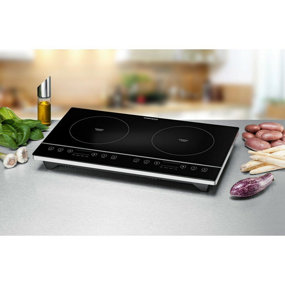| Прочие особенности и свойства | Индукционная технология премиум-класса, светодиодный дисплей., Безрамная стеклокерамическая варочная поверхность, с разделительной полосой между панелью управления и конфоркой., 10 уровней мощности для чувствительной настройки температуры от 60 °C до 240 °C., 180-минутный таймер со звуковым сигналом, функция отключения., Распознавание кастрюли. , 2 конфорки |