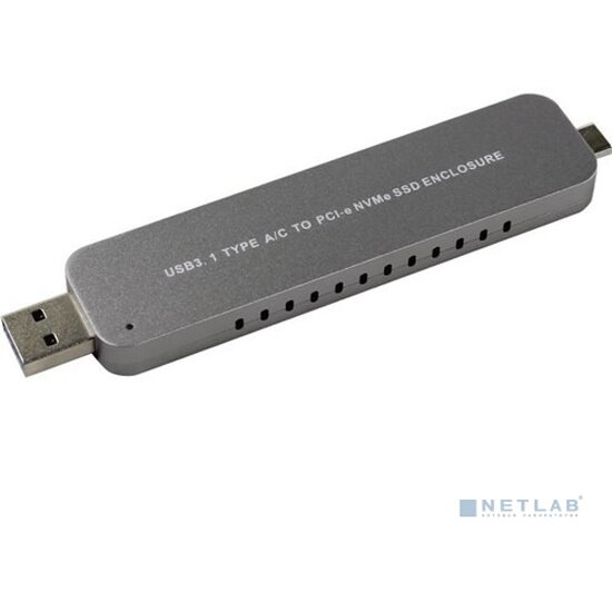 | Описание, назначение | внешний корпус для SSD M.2 NVMe Type 2242/2260/2280 M key, выполнен в виде флешки, материал:алюминий, интерфейс подключения:USB 3.1+Type-C, питание от USB-порта, поддерживает UASP, TRIM |