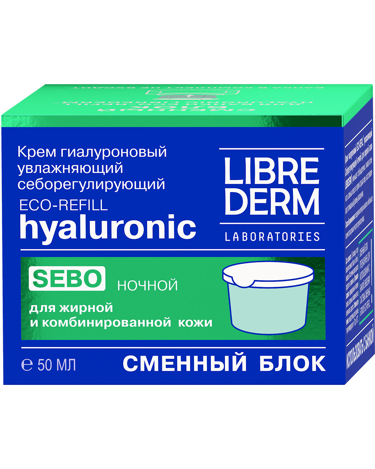 Либридерм крем гиалуроновый увлажняющий себорегулирующий ночной д/жирн. кожи сменный блок 50мл ООО "БИОФАРМЛАБ"/ ООО "Дина+" (1135605)