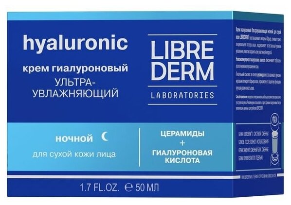 Либридерм крем гиалуроновый ультраувлажняющий ночной для сухой кожи банка 50мл ООО "БИОФАРМЛАБ"/ ООО "Дина+" (1135605)