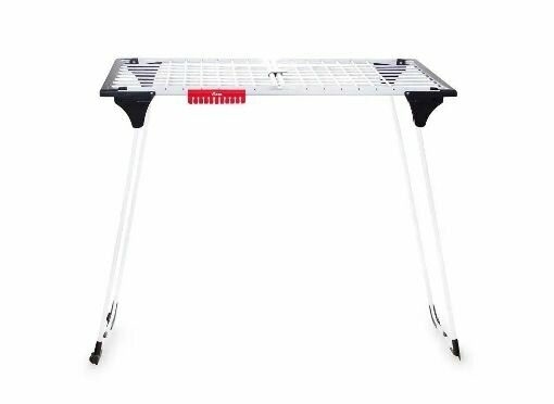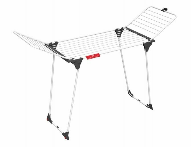 Так же есть колесики, благодаря которым сушилку удобно перемещать с бельем. Рабочая поверхность сушилки 20 м.