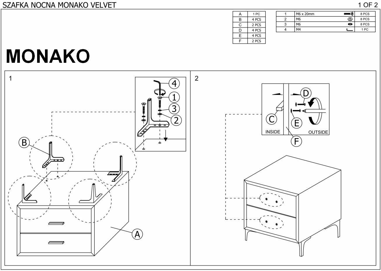 Прикроватная тумба Signal Monako Velvet