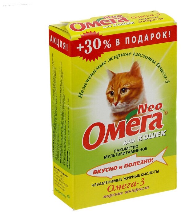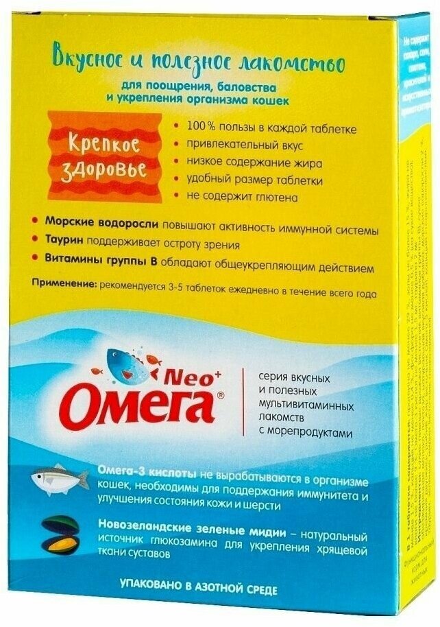Витаминное лакомство для кошек НПП ФАРМАКС Омега Neo+ «Крепкое здоровье» с морскими водорослями