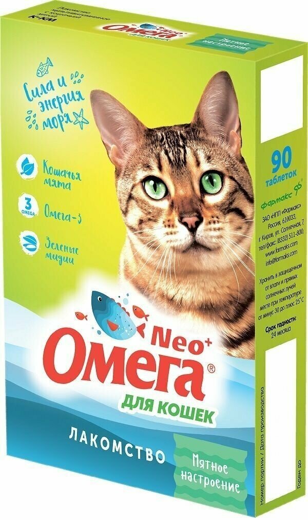 Витаминное лакомство для кошек НПП ФАРМАКС Омега Neo+ «Мятное настроение»